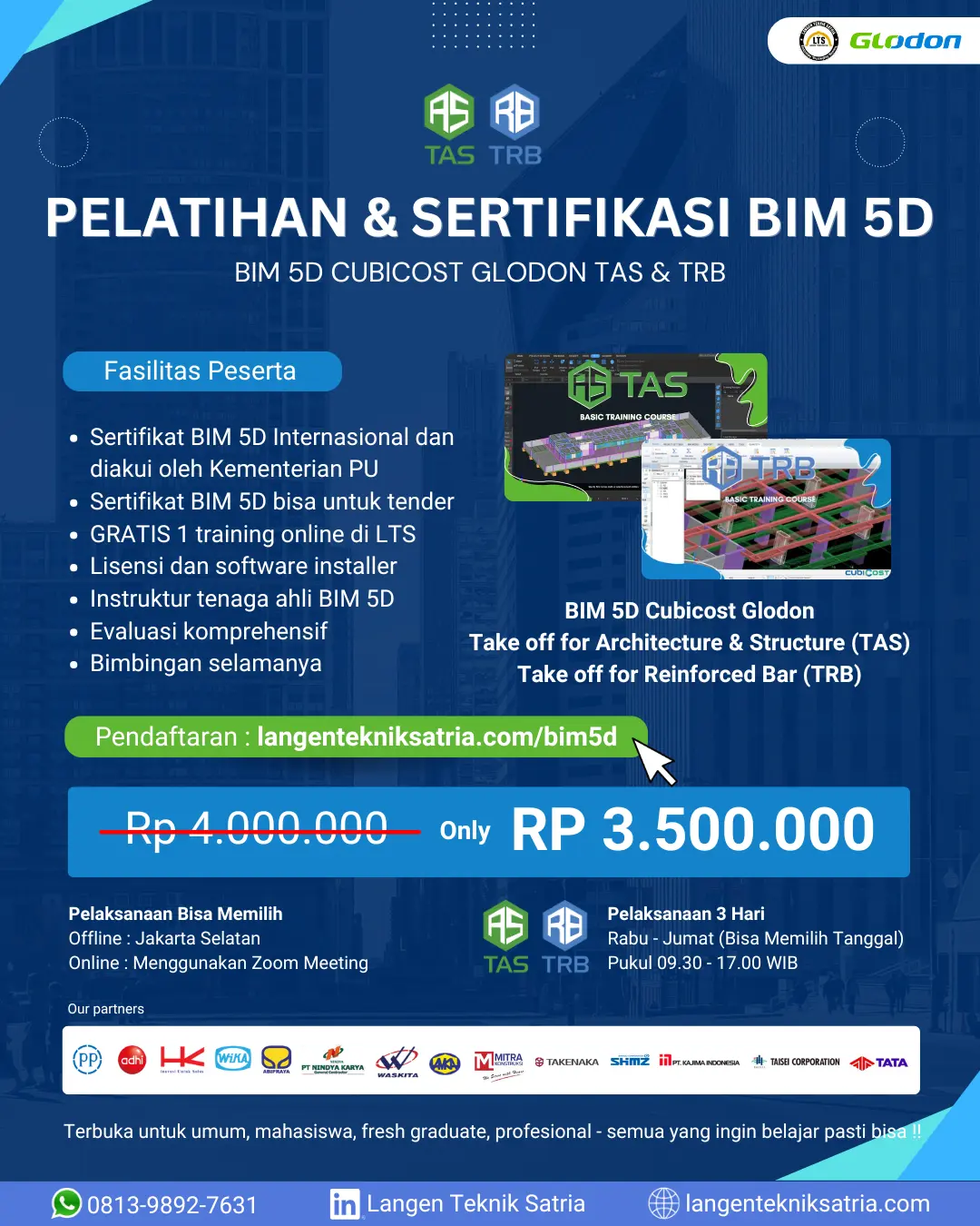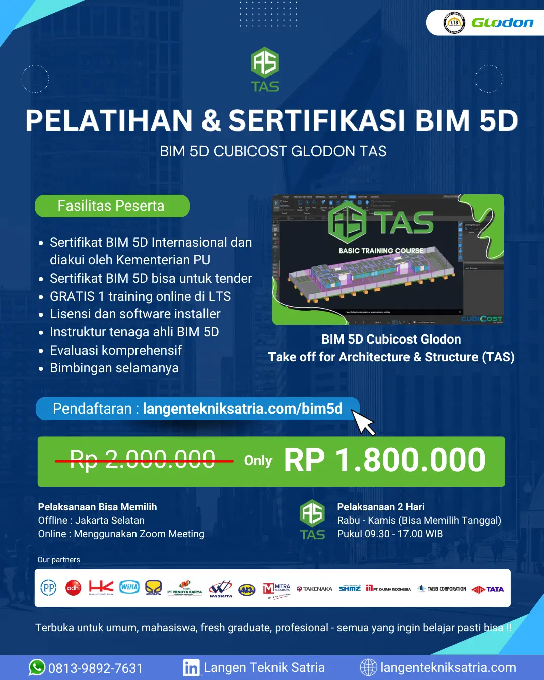 Pendaftaran Pelatihan & Sertifikasi BIM 5D BIM 5D CUBICOST TAS2 Hari Rabu-Kamis Bebas Pilih Tanggal Please enable JavaScript in your browser to complete this form.Please enable JavaScript in your browser to complete this form.Pilih Jadwal yang Anda Inginkan *21-22 Januari 202621-22 Januari 202628-29 Januari 20264-5 Februari 202611-12 Februari 202618-19 Februari 2026Bebas pilih tanggal Pilih Pelaksanaan Online/Offline *OnlineOffline di Jakarta SelatanBebas pilih pelaksanaanTuliskan Instansi Anda Saat Ini *Tuliskan - (strip) jika belum bekerjaPilih Bonus Training di LTS *Revit ArsitekturRevit StrukturRevit MEPRevit JembatanPilih salah 1 sebagai bonus Bersedia Mengikuti S&K dari Kami? *BersediaSelanjutnya65964 BIM 5D CUBICOST TAS & TRB3 Hari Rabu-Jumat Bebas Pilih Tanggal Please enable JavaScript in your browser to complete this form.Please enable JavaScript in your browser to complete this form.Pilih Jadwal yang Anda Inginkan *21-23 Januari 202621-23 Januari 202628-30 Januari 20264-6 Februari 202611-13 Februari 202618-20 Februari 2026Bebas pilih tanggalPilih Pelaksanaan Online/Offline *OnlineOffline di Jakarta SelatanBebas pilih pelaksanaanTuliskan Instansi Anda Saat Ini *Tuliskan - (strip) jika belum bekerjaPilih Bonus Training di LTS *Revit ArsitekturRevit StrukturRevit MEPRevit JembatanPilih salah 1 sebagai bonus Bersedia Mengikuti S&K dari Kami? *BersediaSelanjutnya68577